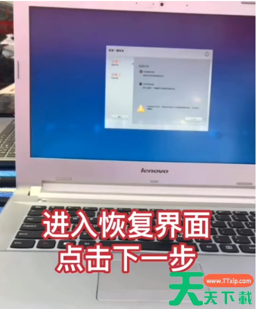 3、按回车键就可以进入到联想的恢复系统工具界面,在该界面中我们只需要全部点是或确定即可。