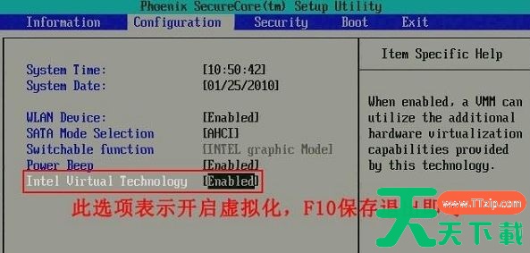 3、此时该选项将变为Enabled,按F10热键保存并退出即可开启VT功能。
