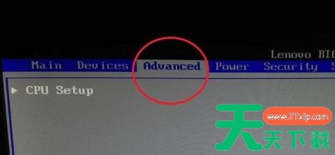 1、进入bios设置后,切换到“Advanced”选项,选择“CPU Setup”并按下回车键。