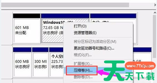 然后选择“压缩卷”。