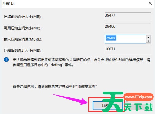 系统会计算出可以压缩空间,输入你需要压缩空间,然后点击:压缩。