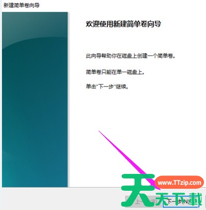 为新建的简单卷选择磁盘的格式,一般选择“NTFS”就好了。