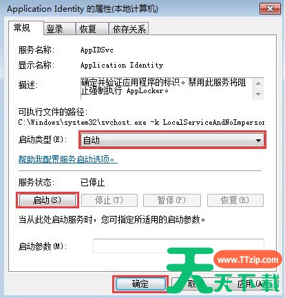 7、在打开的窗口下方找到启动类型,勾选自动,然后在下方点击启动,最后点击确定即可。
