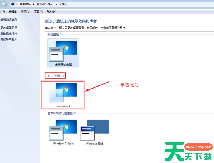 2、然后我们点击进去之后再单击areo主题下的win7。