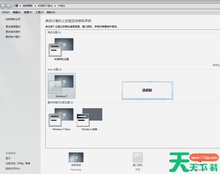 3、接下来电脑会显示请稍后的界面,请不要担心,那是系统正在为我们的电脑配置主题。
