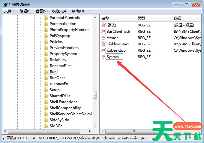 4、双击刚刚新建的字符串值打开编辑窗口,在“数据数值”中输入“c:\windows\system32\Systray.exe”,然后点击确定即可。