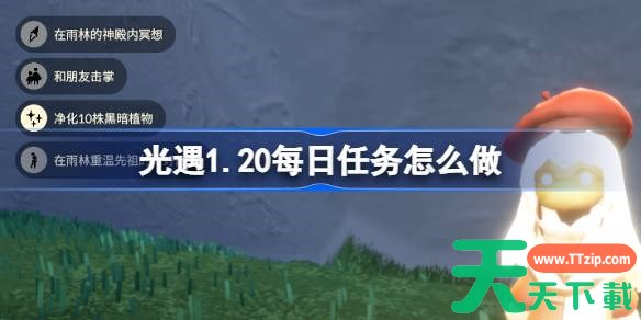 以上就是天天下载(ttzip.com)为大家带来的光遇1.20每日任务怎么做解答,大家都了解了吗?还想要了解更多的内容那就请继续关注天天下载(ttzip.com)吧。