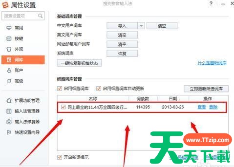 搜狗拼音输入法是一款功能强大的中文输入软件,它可以支持多种输入方式,包括拼音、笔画、手写、语音输入等。搜狗拼音输入法软件支持用户自定义词库,用户可以将常用的词语、短语、甚至表情符号添加到词库中,从而实现快速输入。 搜狗拼音输入法怎么在字库增加文字?搜狗拼音输入法在字库增加文字的方法1、鼠标右击点击搜狗输入法工具箱图标,选择“设置属性”。 2、在“属性设置”中,选择“词库”,接着在“细胞词库管理”中,勾选“启用细胞词库”和“启用细胞词库自动更新”。 3、然后双击下载好的词库,词库会自动安装。 4、安装完成后,重新打开“属性设置”,就可以在“细胞词库管理”中,看到添加的词库了。 @天天下载TTzip 除特别注明外,本站所有文章均为 天天下载 原创,转载请注明出处来自 https://www.ttzip.com/218394.html