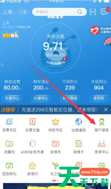 进入联通网厅首页后,如下图所示,找到客户服务入口。点击并进入。