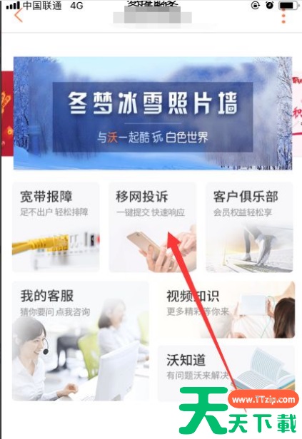 进后如下图所示,同时找到页面中的移网投诉入口。点击进入