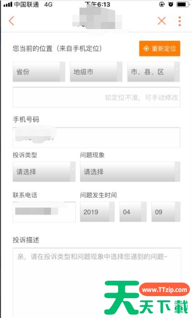 完善你需要投诉的内容以及问题描述,发生时间等等信息。完善好后即可点击页面下方的提交。