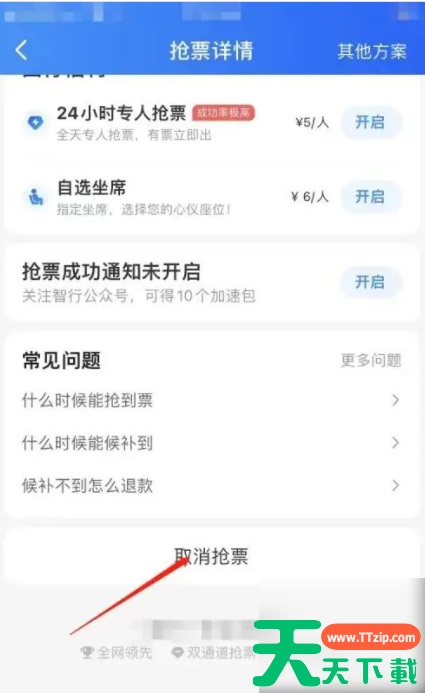 2、进入抢票界面,选择需要取消的订单,选择下方取消订单选项