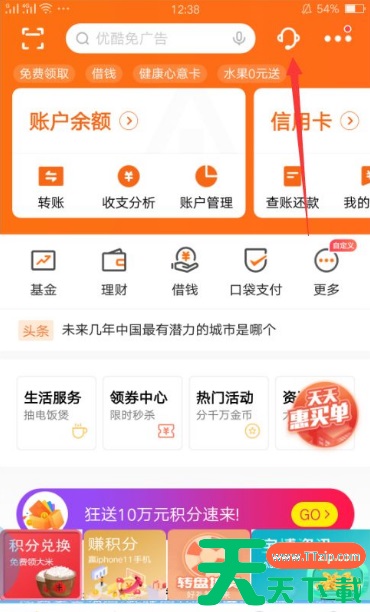 在手机上打开平安口袋银行APP,点击右上角的“客服”图标。