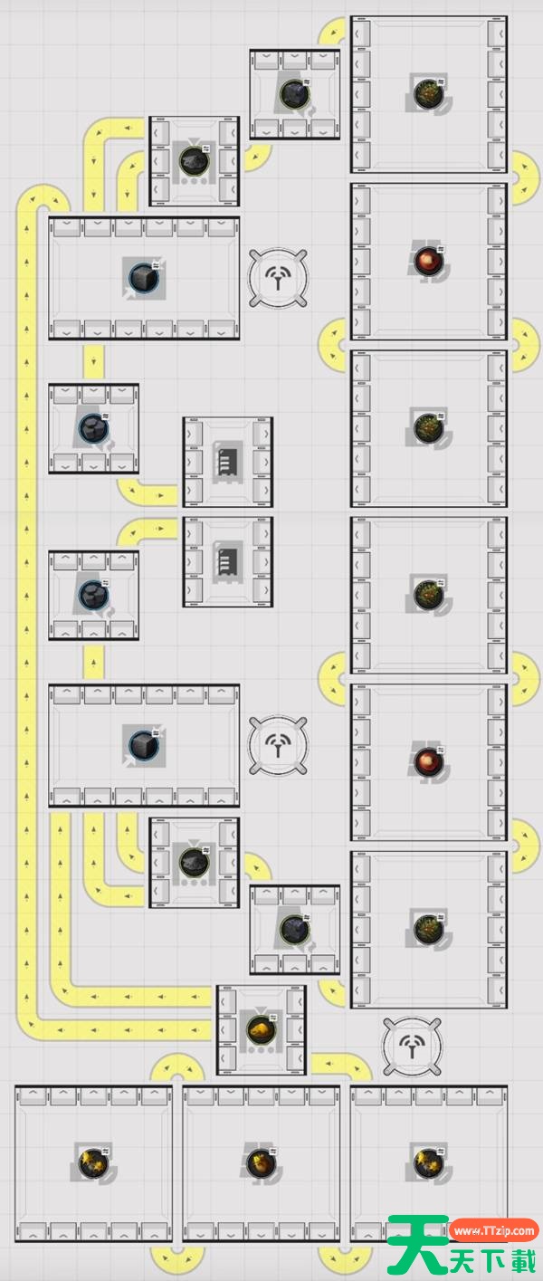 使用的设施:研磨机*2、种植机*6、采种机*3、协议储存箱*2、粉碎机*3、精炼炉*4、供电桩*3、传送带