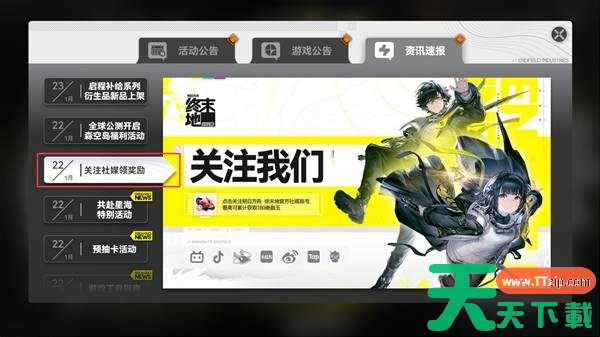 以上就是天天下载TTzip为大家带来的明日方舟终末地关注官媒怎么领取奖励的内容解读了,大家都了解了吗?还想要了解更多的内容那就请继续关注天天下载(ttzip.com)吧。