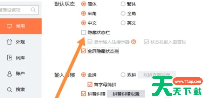搜狗拼音输入法是一款非常好用、功能强大的中文输入法软件,它提供有丰富的候选词和智能联想功能,能够帮助用户快速准确地输入文字。搜狗拼音输入法软件支持用户通过设置隐藏输入法的状态栏,仅保留核心输入窗口,创建一个简洁、无干扰的输入环境,提升输入效率。 搜狗拼音输入法怎么隐藏工具栏?搜狗拼音输入法隐藏工具栏的方法 1、切换电脑输入法到搜狗拼音输入法,鼠标点击软件的工具箱图标。 2、接着点击属性设置。 3、最后勾选隐藏状态栏选项即可。 @天天下载TTzip 除特别注明外,本站所有文章均为 天天下载 原创,转载请注明出处来自 https://www.ttzip.com/218919.html