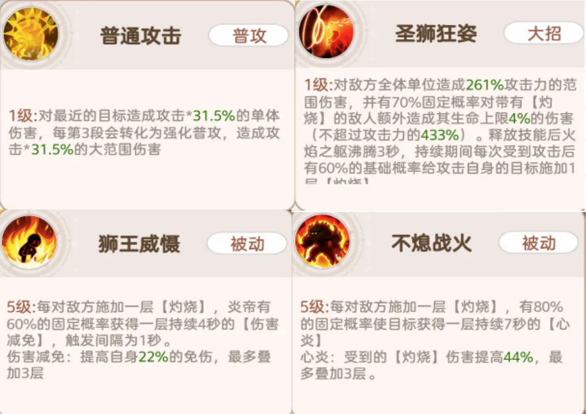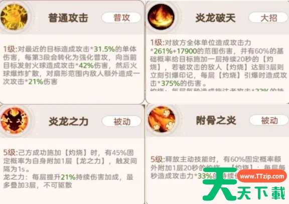 1、小炎龙高额的群体伤害以及叠加灼烧并且引爆的机制。
