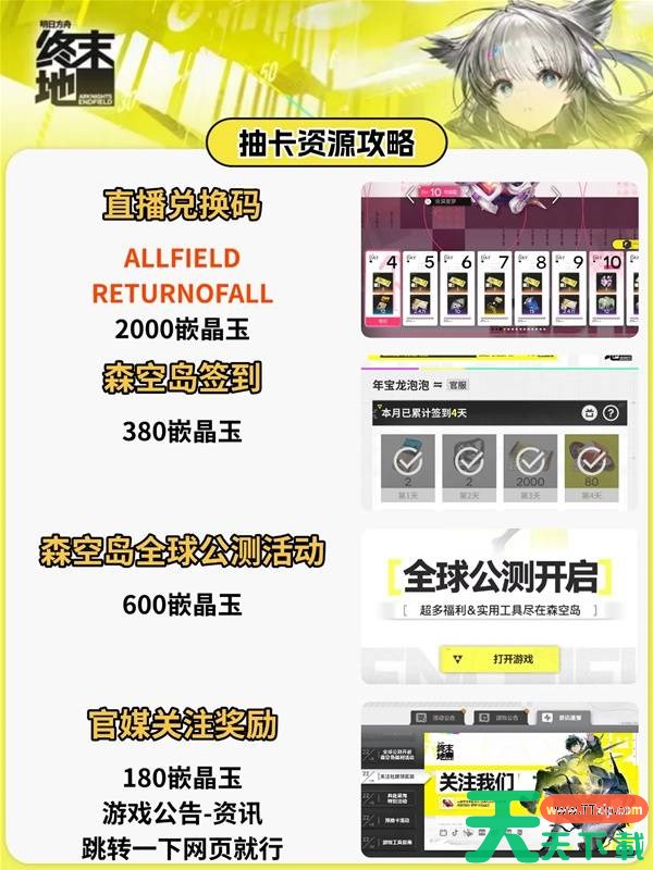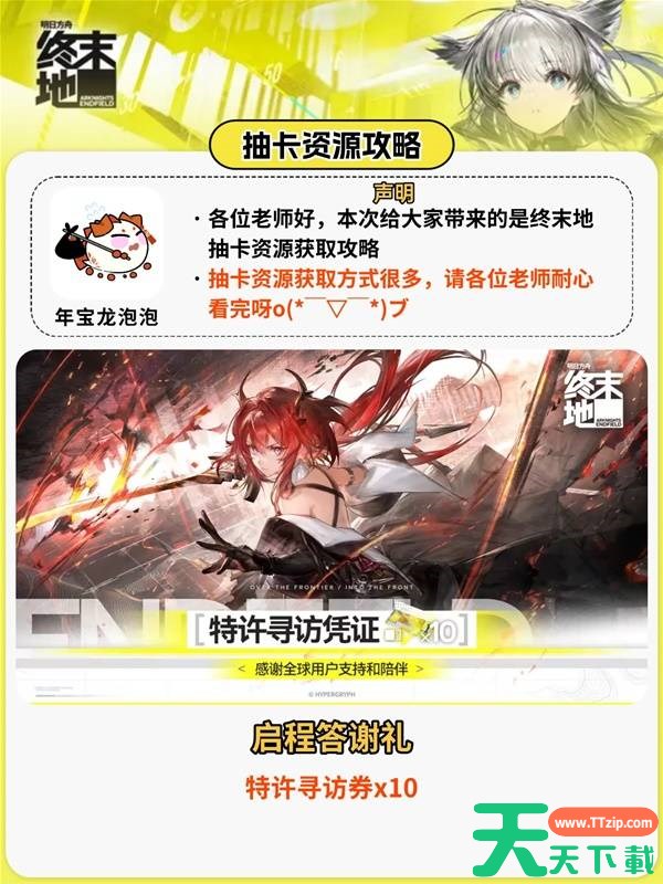 以上就是天天下载TTzip为大家带来的明日方舟终末地抽卡资源获取方式一览的内容解读了,大家都了解了吗?还想要了解更多的内容那就请继续关注天天下载(ttzip.com)吧。