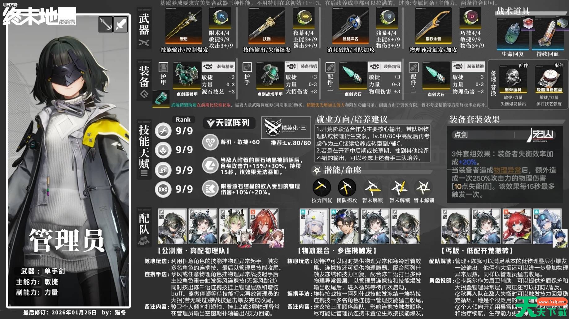 明日方舟终末地管理员怎么养成?管理员作为一个近战角色,这个角色拥有十分高的伤害上限,合理养成之后,能爆发出你的角色更为强大实力,接下来天天下载Ttzip为你整理了详细养成攻略。