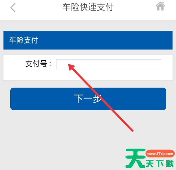 点击车险快捷支付。 接下来,输入支付号,点击下一步。 支付成功后,会有缴费成功的页面。 @天天资源网TTzip 除特别注明外,本站所有文章均为 天天下载 原创,转载请注明出处来自 https://www.ttzip.com/219538.html