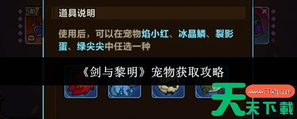 剑与黎明宠物怎么获取?剑与黎明中的宠物可是玩家的好帮手,它不光能增强玩家的实力,还能给技能提供不错的强化效果,令玩家的战力得到极大的提升。那剑与黎明宠物怎么获得?别急,宠物在剑与黎明中的获取方法很明确,总共就三种,且游戏内的所有宠物都能通过它们来完成获取,各位不妨参考下。