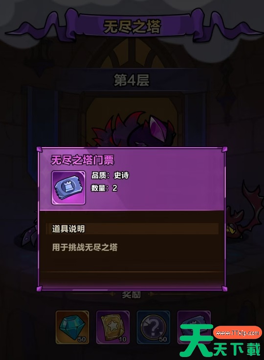 只有在玩家通关了3阶-5关卡后,它才会在历练功能中被激活,玩家们在挑战时也将从第一层开始,逐步进行自己的爬塔之旅。它里边的层数没有上限,只要玩家能一直通关,便能无限制地挑战下去。每次进行无尽之塔的挑战时,都要耗费一张无尽之塔门票,该门票每天能免费拿到两张,用完后若是玩家还想继续挑战无尽之塔,需花费钻石来进行购买。但各位不要着急,每次成功完成挑战后,都能拿到一张无尽之塔门票,因此只要玩家一直赢,那门票就相当于没有消耗,只有没挑战成功才算是将门票真正地消耗掉。