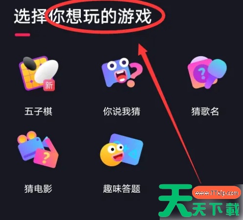 第一步:打开他趣app,聊天室界面选择【三个点图标】 第二步:进入三个点界面,选择【互动】 第三步:进入互动界面,选择【你想玩的游戏】点击即可 @天天资源网TTzip 除特别注明外,本站所有文章均为 天天下载 原创,转载请注明出处来自 https://www.ttzip.com/219582.html