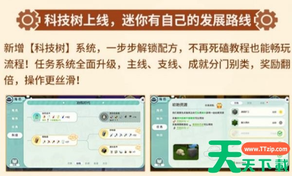 机械时代版本最核心的更新就是加入了科技树系统。玩家可以通过探索和完成任务来解锁各种制作配方,逐步提升自己的科技水平。这个系统让游戏进程更加清晰有序,同时也增加了游戏的策略性和可玩性。