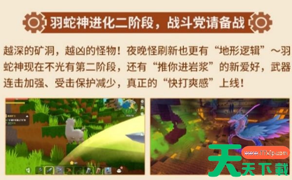 羽神蛇在机械时代版本中获得了二阶段进化,战斗连击效果得到增强。敌人对羽神蛇的打击有所削弱,战斗节奏变得更加紧凑刺激。这些改动让迷你世界的战斗体验更加爽快流畅。