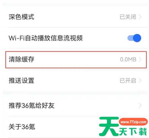 进入36氪app主页【我的】,点击【设置】。 进入【设置】页面,点击【清除缓存】即可。 @天天资源网TTzip 除特别注明外,本站所有文章均为 天天下载 原创,转载请注明出处来自 https://www.ttzip.com/220120.html