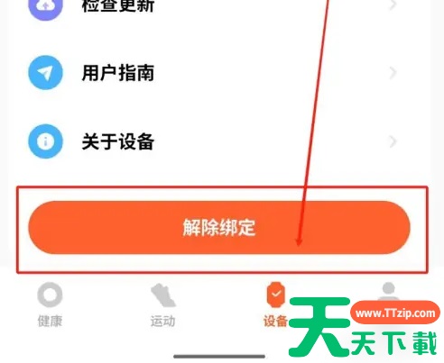 第一步:打开小米运动健康,在我的界面上,点击【设备】选项 第二步:在设备界面上,点击【解除绑定】选项 第三步:在确认解除绑定界面上,点击【确定】选项 @天天资源网TTzip 除特别注明外,本站所有文章均为 天天下载 原创,转载请注明出处来自 https://www.ttzip.com/220162.html