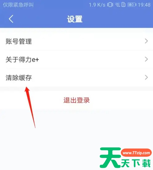 点开“得力e+”APP。 主页面点击右下角“我的”。 “我的”页面点击“设置”一栏。 “设置”页面继续点击“清除缓存”一栏。 得力e+APP已成功清除系统缓存。 @天天资源网TTzip 除特别注明外,本站所有文章均为 天天下载 原创,转载请注明出处来自 https://www.ttzip.com/220166.html