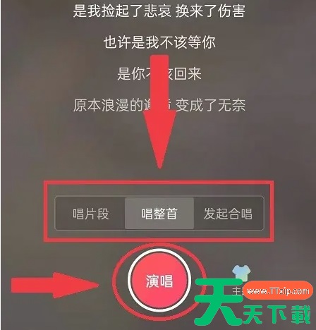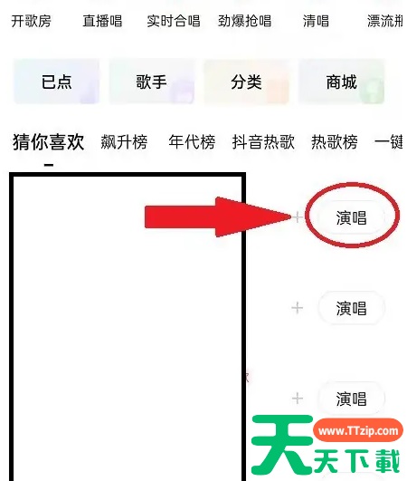 1、用手机登录唱吧APP,如图 2、在首页导航栏点击“唱歌”,如图 3、页面跳转后选择要唱的歌,然后点击其后面的“演唱”,如图 4、进入歌曲演唱页面首先选择演出形式,然后点击红色按钮,开始随着伴奏演唱,如图 @天天资源网TTzip 除特别注明外,本站所有文章均为 天天下载 原创,转载请注明出处来自 https://www.ttzip.com/220220.html