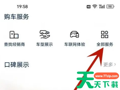 进入软件主页,点击购车。 进入页面后,点击全部服务。 进入页面后,点击仪表指示灯。 进入页面后,点击胎压报警。 点击去经销商处理,即可解决问题。 @天天资源网TTzip 除特别注明外,本站所有文章均为 天天下载 原创,转载请注明出处来自 https://www.ttzip.com/220249.html