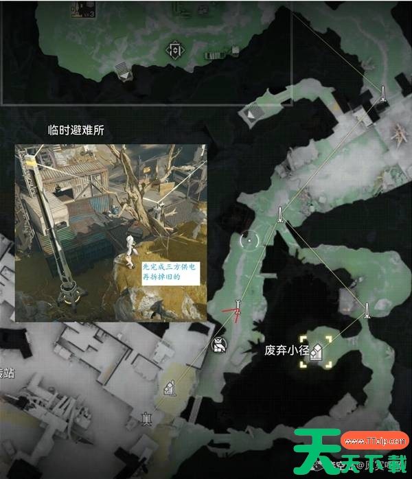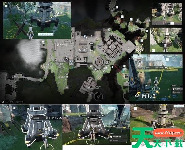 本路线主要针对四号谷地的电力传输路线进行整理,重点展示关键供电节点的位置分布。拉线过程中需要使用以下设施:
