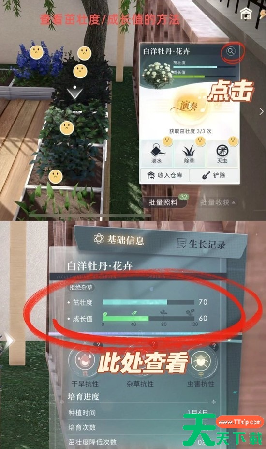 首先,我们需要分清楚植株的两个属性,一个是茁壮度,一个是成长值。