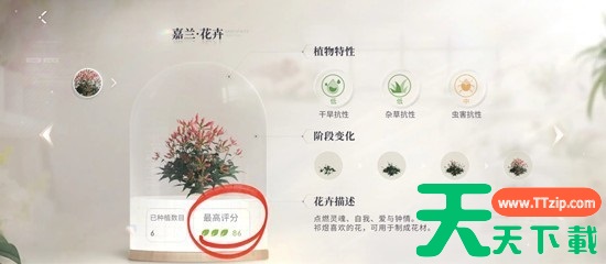 成长值的高低是影响植株成长速度,即决定这个花卉什么时候能够收获的唯一决定因素。成长值达到标准,这个植株会直接成熟被收获,达到成熟后植株的品质将无法发生变动。