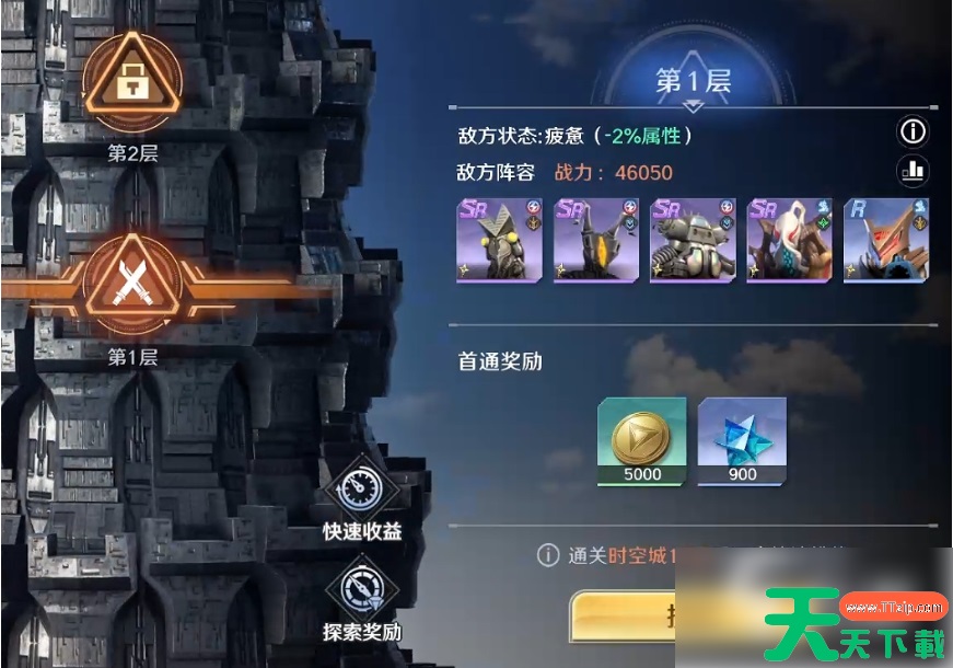 玩家等级30级时解锁,模式类似爬塔,可让玩家一层层向上挑战,每完成一层都能获得【金币】、【星魂】等奖励,通关特定层关卡的挑战还可领到【钻石】、【星魂】等资源,且有着与守卫地球一样的挂机收菜功能。