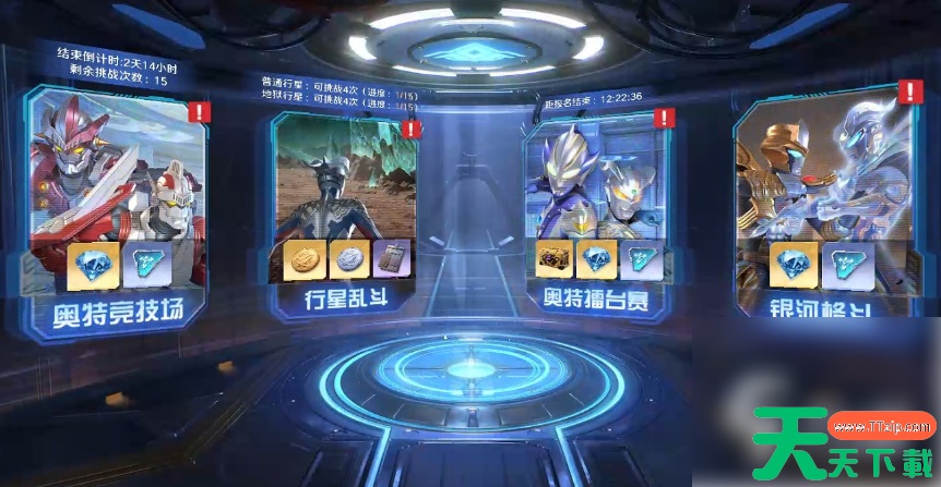 玩家等级在14级时就可以解锁,里边包括【奥特竞技场】、【行星乱斗】等玩法,会根据玩家与他人的竞技胜负情况,为玩家们送来【钻石】、【竞技币】、【乱斗币】等资源。其中,【竞技币】、【乱斗币】等资源可在各自对应的商店里兑换多种道具。