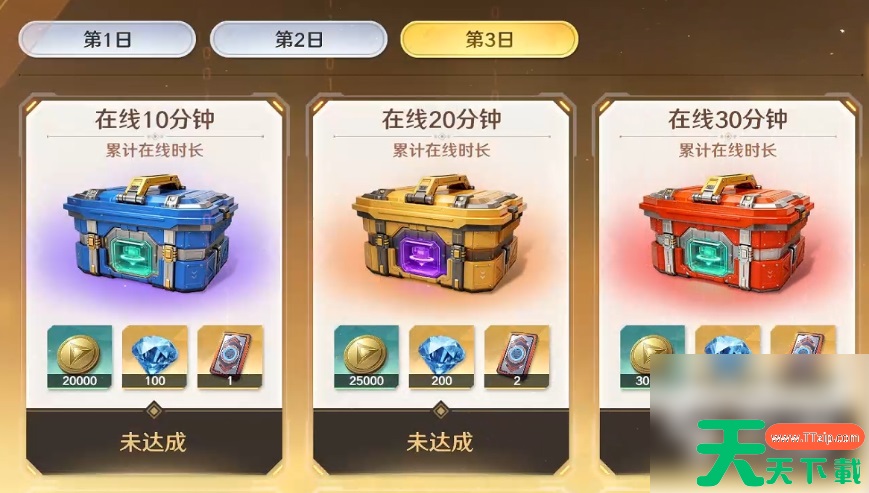 玩家6级时解锁,可在【福利】功能中的【福利精选】中找到。累计在线时长分别满10分钟、20分钟和30分钟,便能领到对应的在线时长奖励,包含【金币】、【能量重构卡】、【钻石】。该玩法可连续做3日。