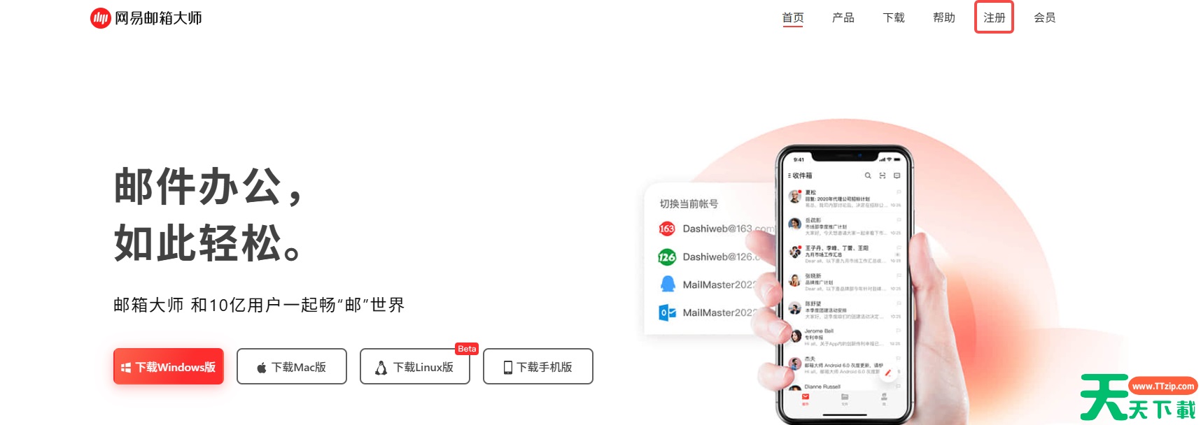 网易邮箱大师支持添加网易、QQ、Outlook 等主流邮箱,实现一站式管理;