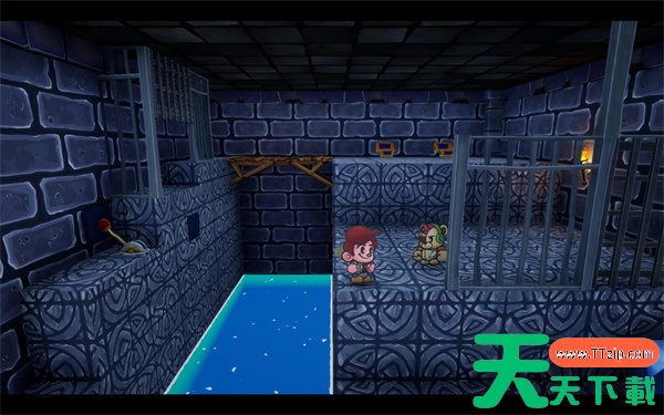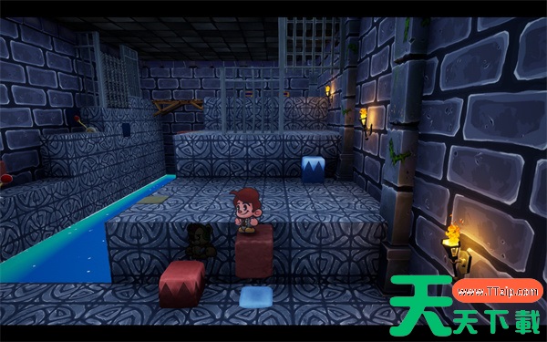 按下杠杆可以打开通往下一层的门,我们需要通过升起一个蓝色方块把弗林特送上去。
