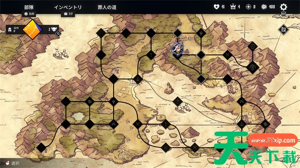 在场地地图上,前进一个格子算作一天的1/6(6步=1天)。