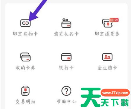 在底部选项中,点击右边的我的。 然后在我的页面,点击虹包打开。 在打开的页面,点击绑定购物卡选项。 在打开的绑定购物卡页面,输入卡号和密码,点击绑定。 @天天资源网TTzip 除特别注明外,本站所有文章均为 天天下载 原创,转载请注明出处来自 https://www.ttzip.com/221932.html