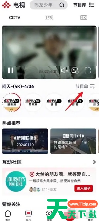 央视频是央视总台出品的免费视频App,直播、点播、纪录片、赛事一键直达。 错过直播也能在“节目单”里随时回放,新闻联播、世界杯、综艺想补就补。 央视频怎么看回放?央视频看回放的步骤1、打开央视频,点底部电视图标 2、进电视页后,再点“节目单” 3、在节目单里挑想看的节目,按“回放”就能直接看 央视频回放把直播变成“随时播”,零碎时间也能完整补课。 跳过广告、暂停重播,精彩镜头想刷几遍都可以。@天天下载TTzip 除特别注明外,本站所有文章均为 天天下载 原创,转载请注明出处来自 https://www.ttzip.com/224458.html
