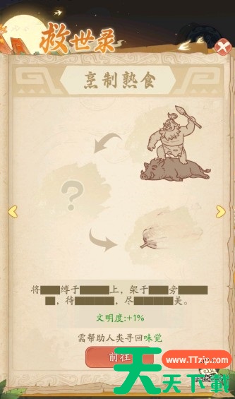 教化万民:伏羲可使用救世录,将其中记载的技术教授给部落人民,以获得【文明值】,族长也可以进行【推演加速】获得大量文明值。