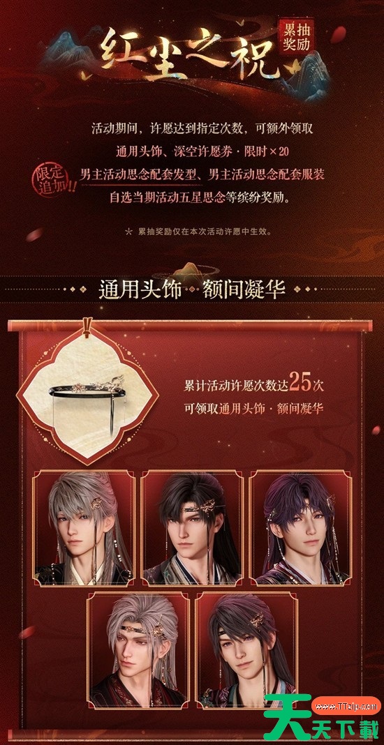 累计活动许愿达25次,可领取通用头饰「额间凝华」;