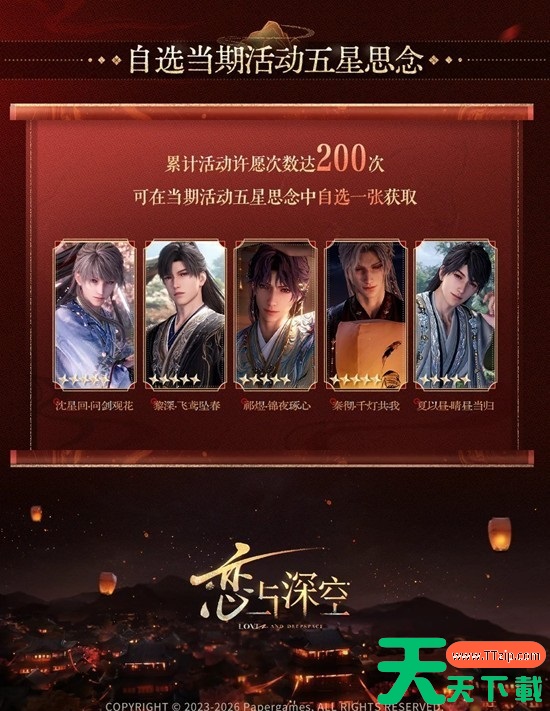 恋与深空五星思念限时许愿人间缱绻意许愿规则说明