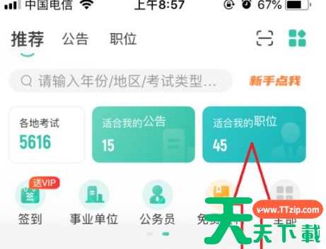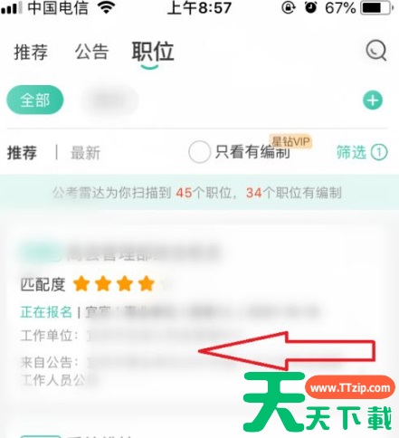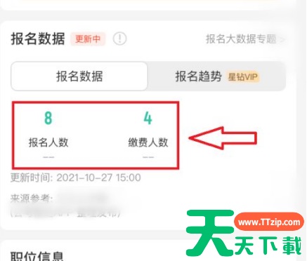 打开手机桌面上的公考雷达 在公考雷达首页,点击以下位置处的【适合我的职位】 点击要查看报名人数的岗位 在以下位置处即可查看该岗位的报名人数,同时也可以查看到缴费人数。 @天天资源网TTzip 除特别注明外,本站所有文章均为 天天下载 原创,转载请注明出处来自 https://www.ttzip.com/224544.html