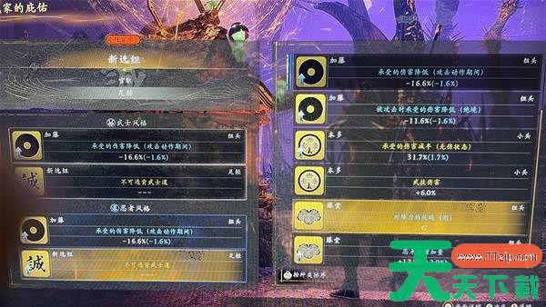 2.武家选择一个新选组的不可违背武士之道(近战加伤44%左右),再选一个加藤的动作减伤或者藤堂的加血都可以,对操作有信心的选本多的武技增伤或还有一个近战增伤